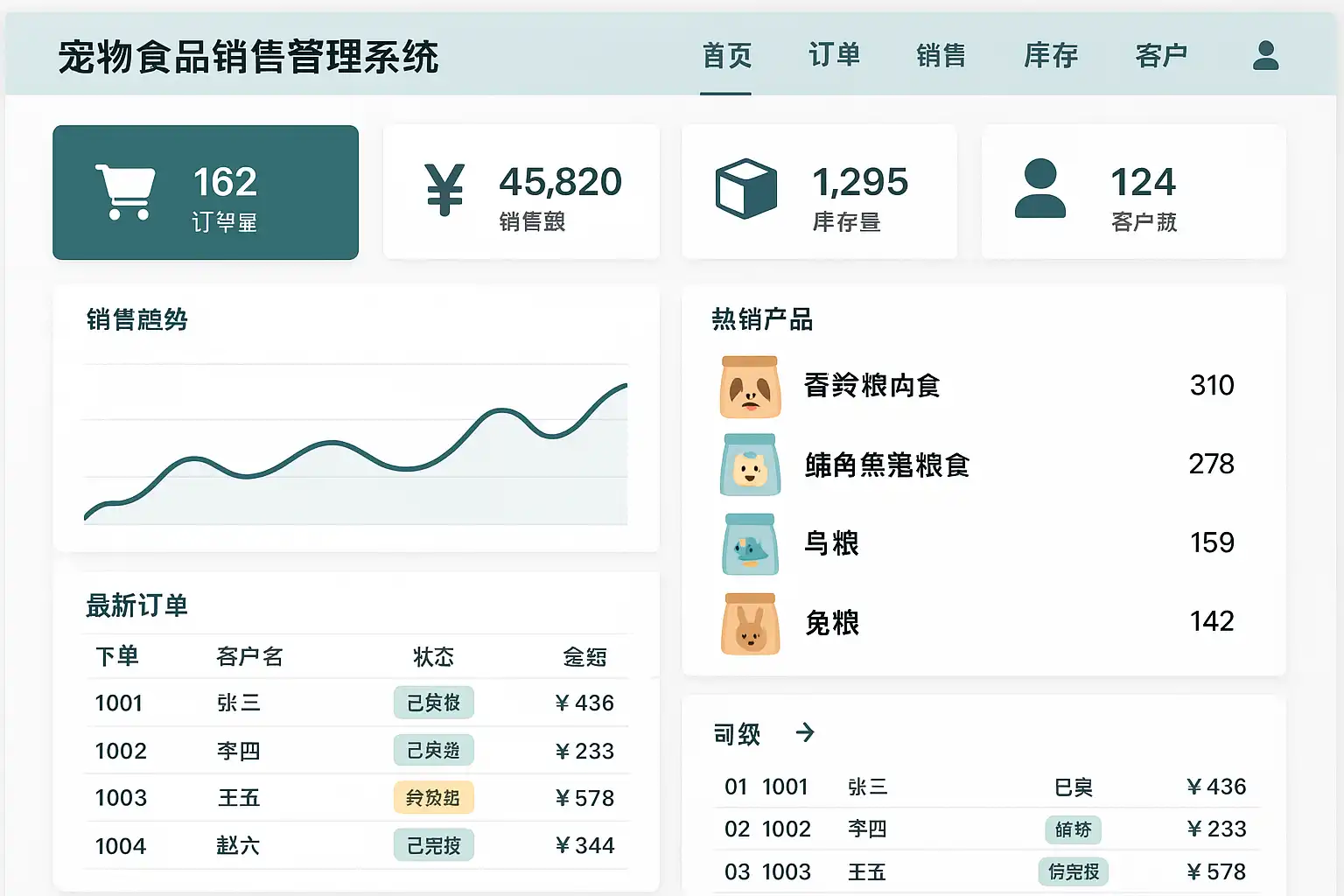 自动化流程是提升宠物食品销售管理系统效率的重要手段,常见优化措施有: