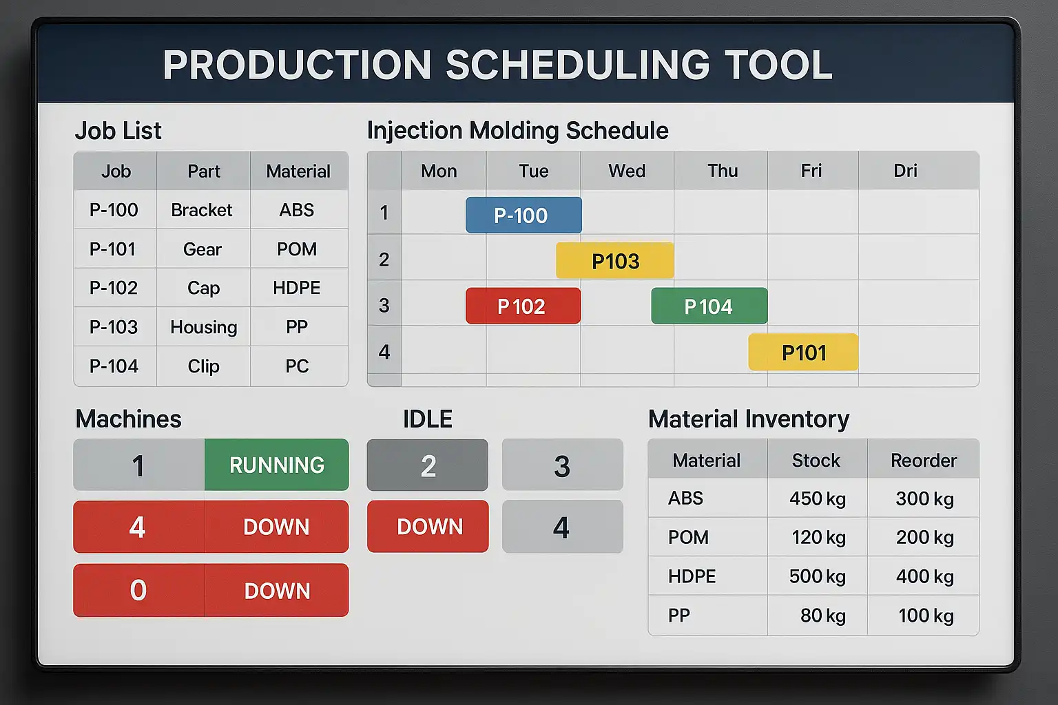 基于大量注塑企业案例,生产调度工具提升效率的核心方案如下: