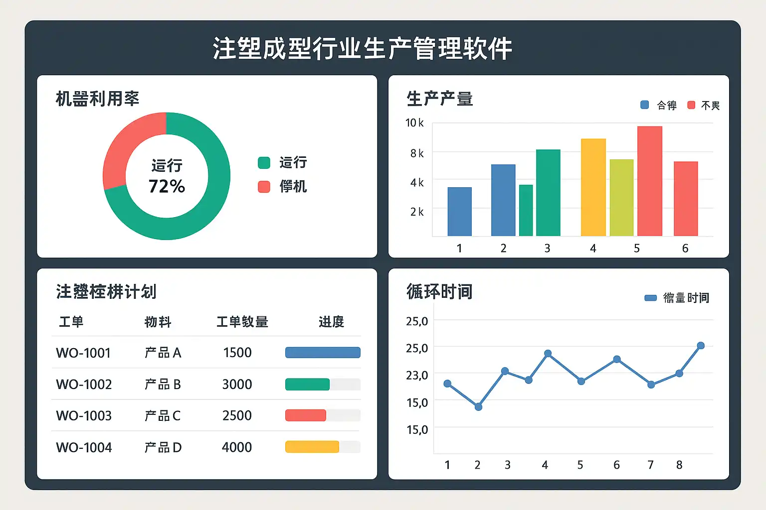 案例:某注塑企业通过引入优化后的生产管理软件,实现了整体生产效率提升25%,设备故障率降低40%。