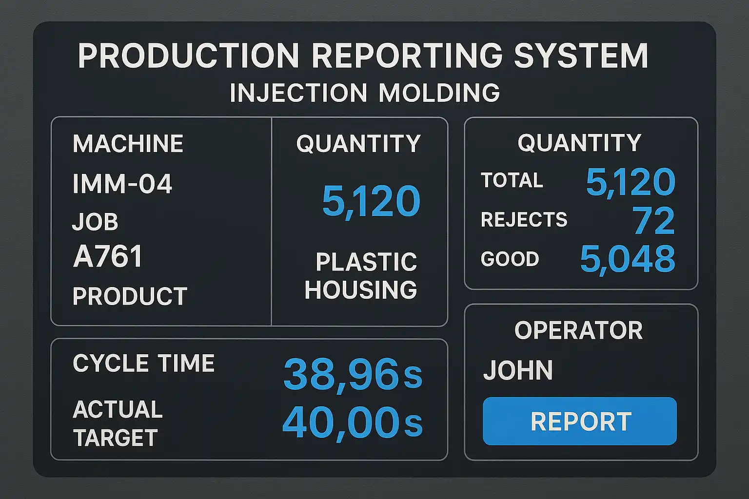 案例二:电子元件注塑厂班组产量管理优化 背景:班组产量统计依赖人工,每日需2小时手工汇总。 实施:部署报工系统后,各班组通过扫码、录入报工数据,系统自动统计并推送日报。 效果:统计时间缩短至5分钟,产量数据准确率提升至99%,管理层可随时掌握生产动态,及时调整排班。