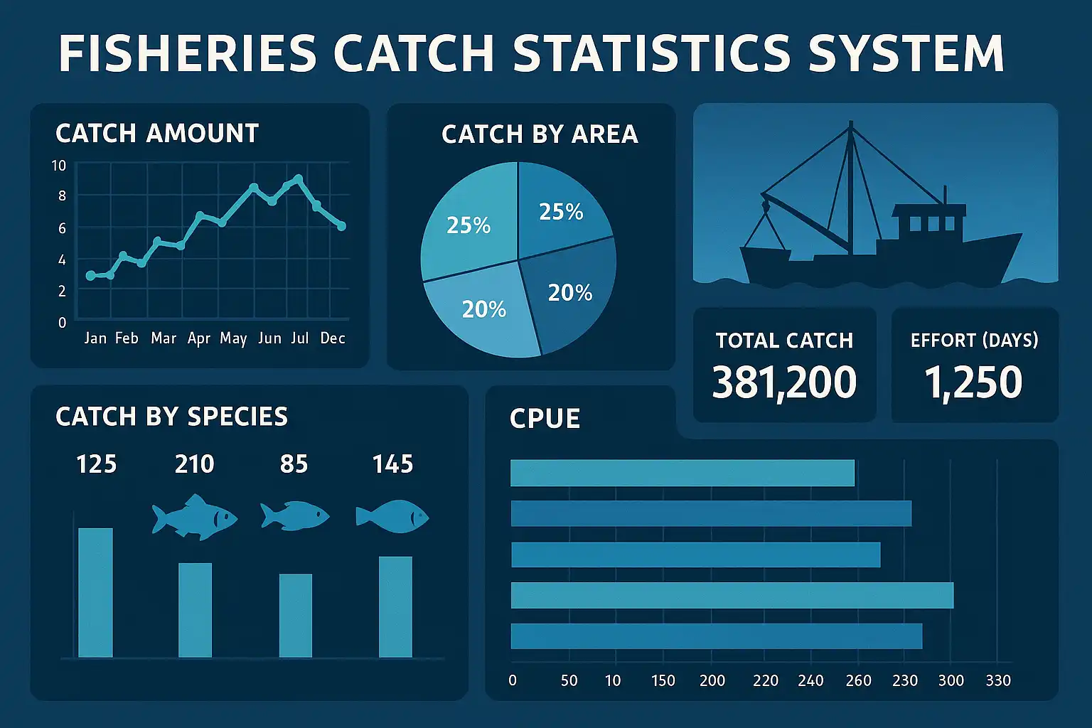 - 数据可视化与报表自动生成:实时展示捕捞数据趋势,自动生成统计分析报表,方便管理者决策。