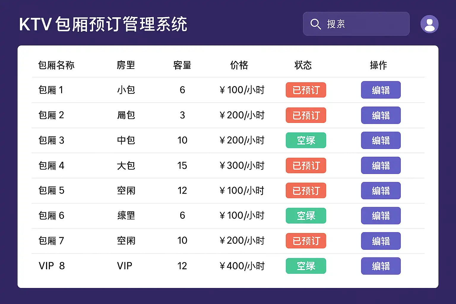 - 智能排班算法:自动优化包厢分配,提升利用率。