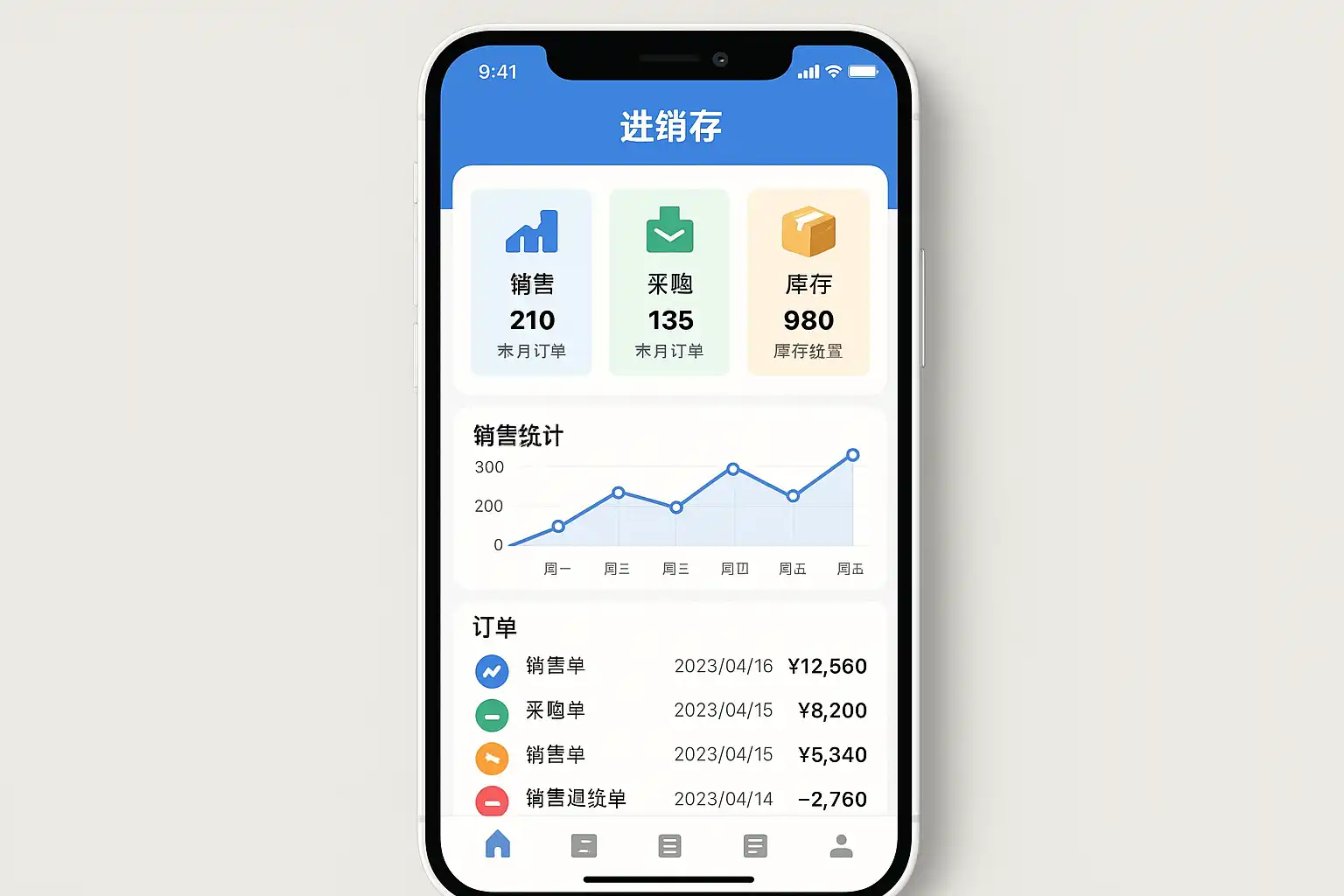 | 采购订单 | 向供应商下达的商品采购请求 | 通过进销存app自动生成采购订单,减少人工录入错误。 |