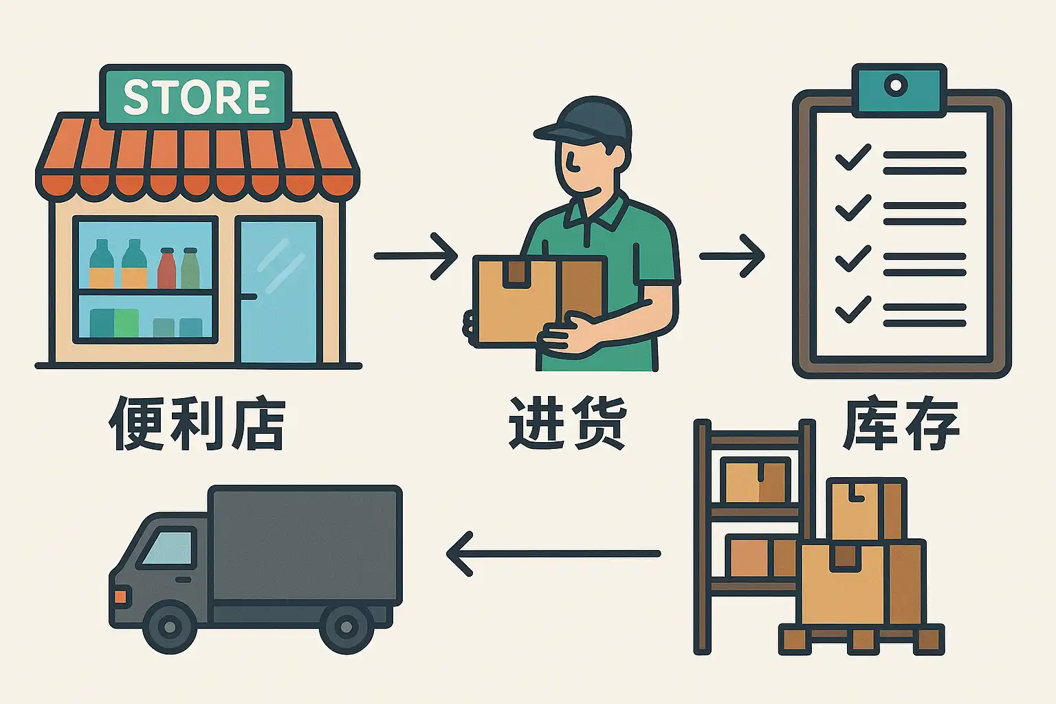 库存控制直接影响便利店的资金周转和商品周转速度。常用的库存管理方法包括: