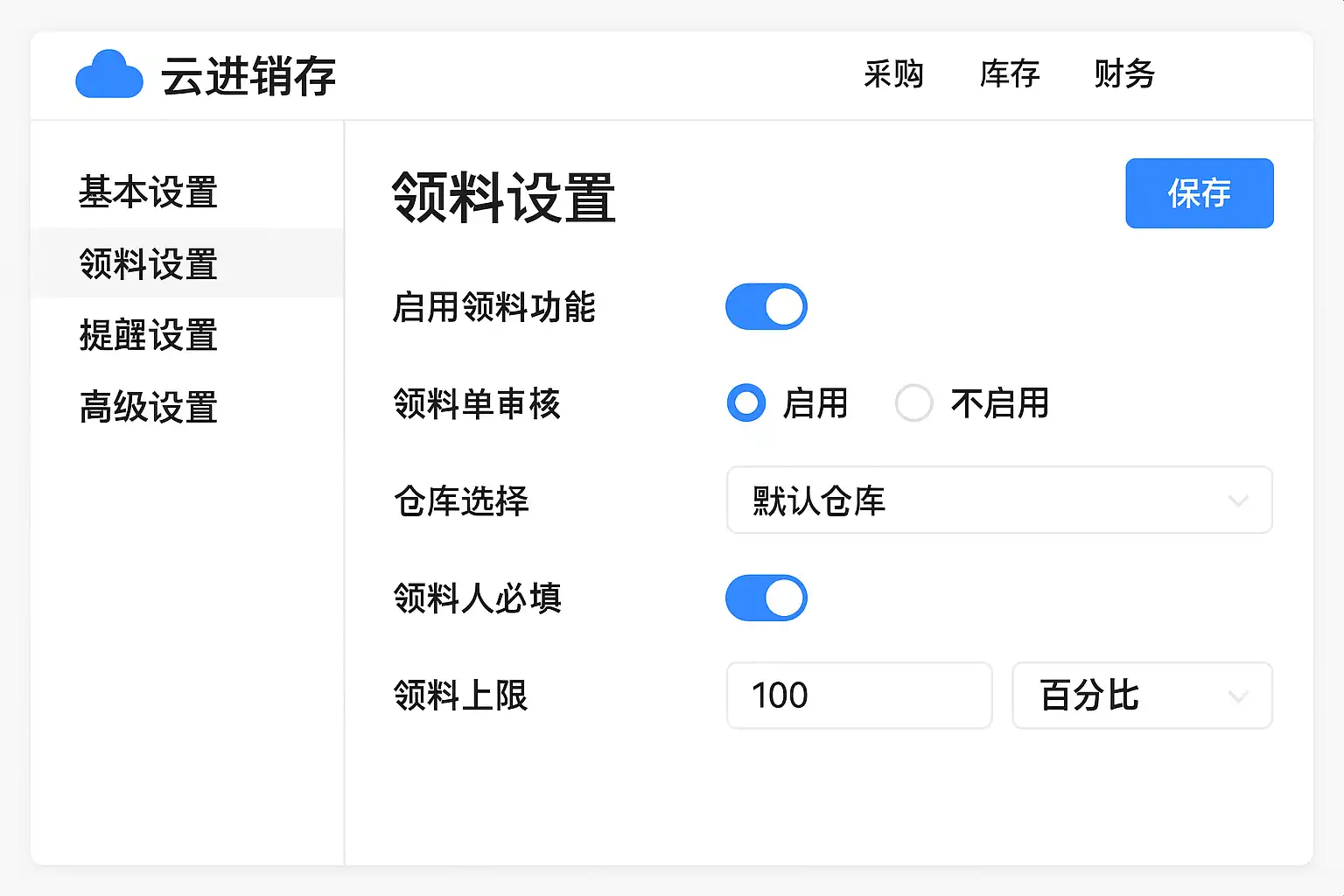 《云进销存领料设置详解,如何高效管理领料流程?》