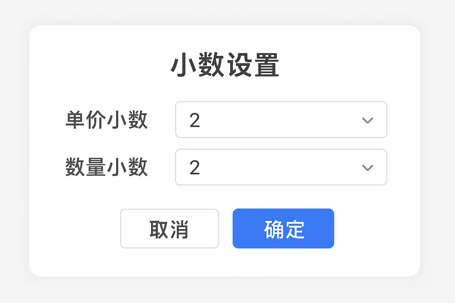 - 小数位设置涉及全局数据精度,建议仅限于系统管理员、财务主管等核心角色操作。