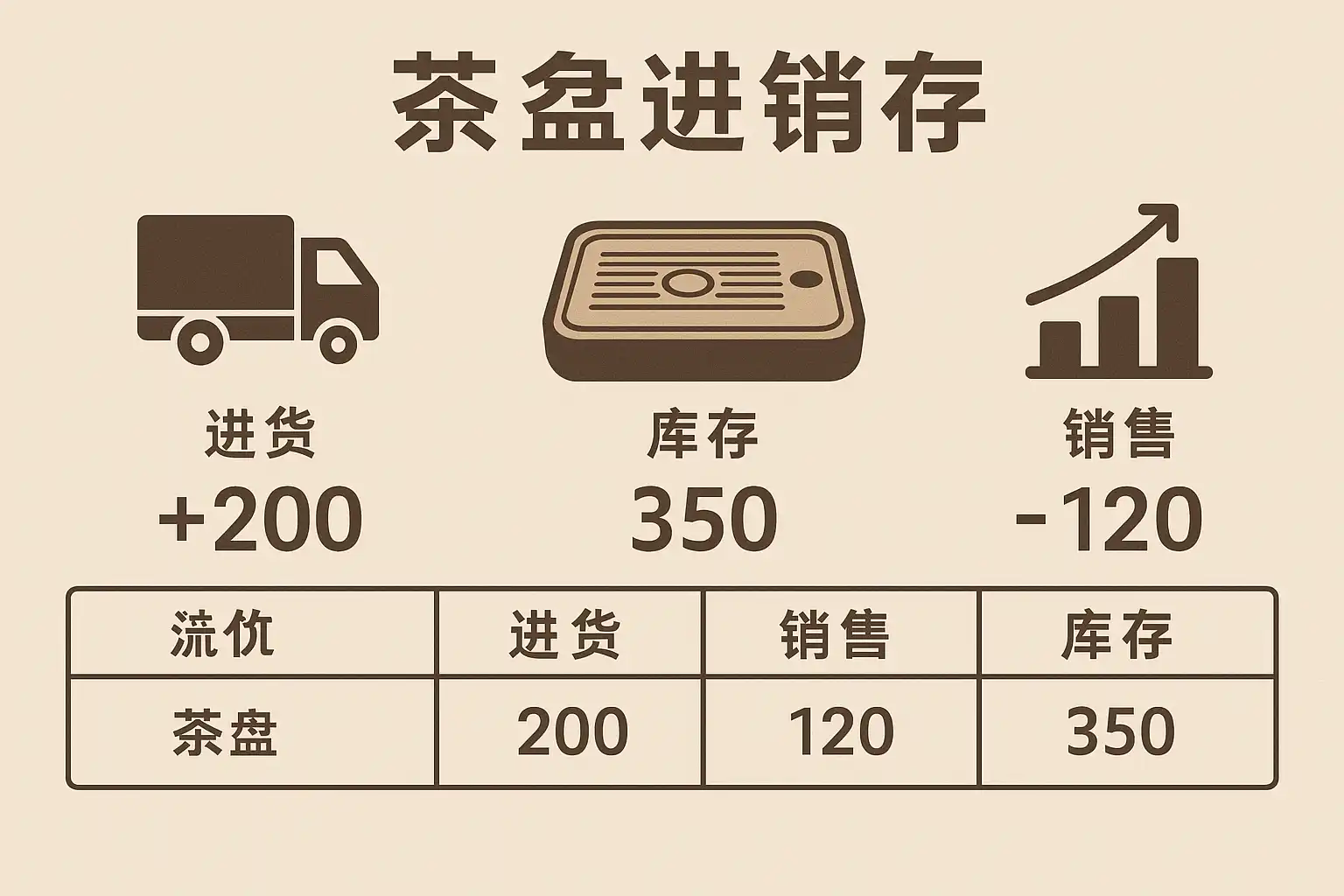| 库存周转率 | 衡量库存流动与资金占用 | 出入库流水、销售记录 | 判断哪些茶盘畅销、哪些滞销 |