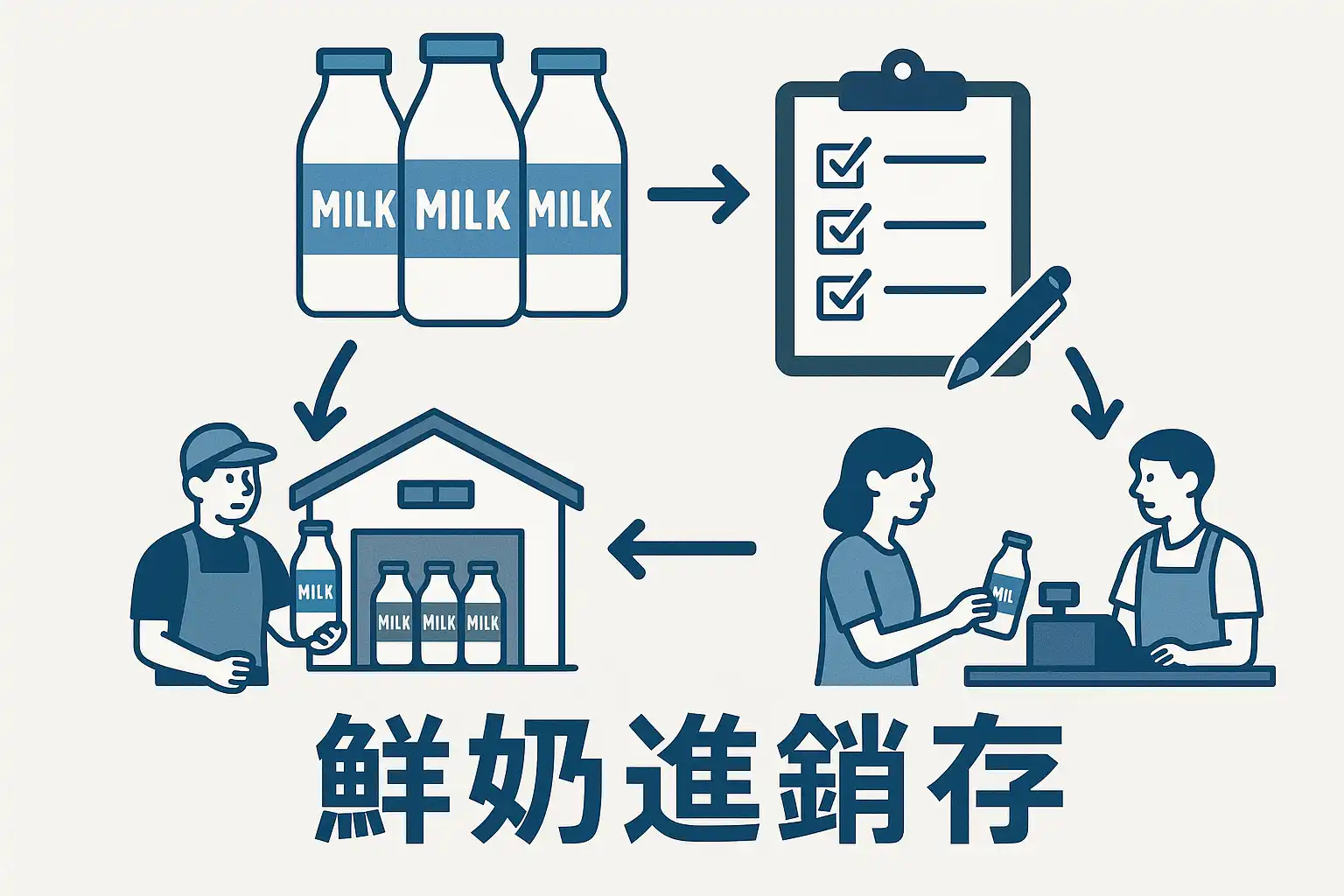 - 先进先出(FIFO)原则:确保鲜奶按照进货时间依次销售,减少过期风险。