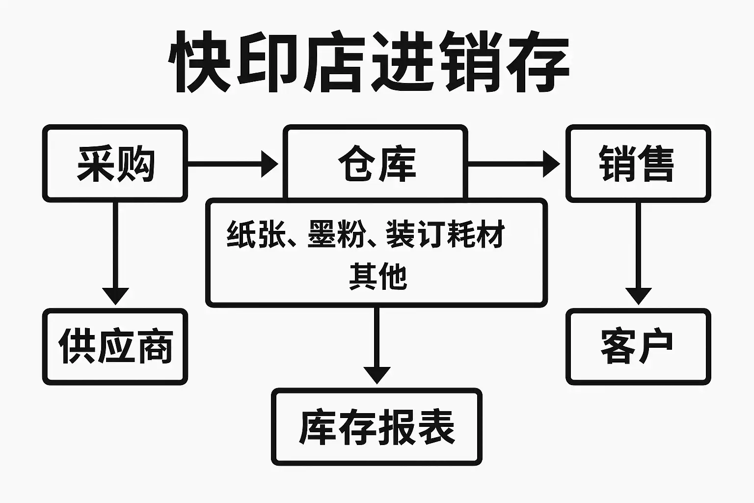 库存管理是快印店运营的核心之一。进销存系统通过以下方式提升库存管理效率,降低运营成本: