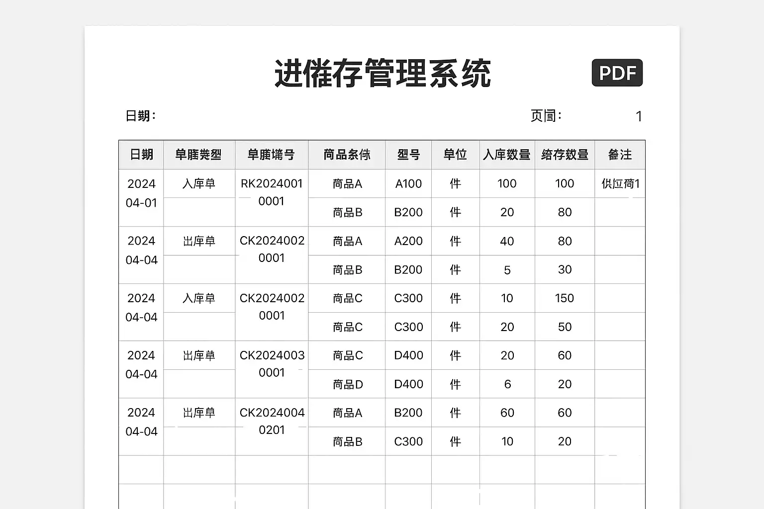 要高效把进销存单据无损导出为PDF,核心在于“模板规范、引擎选型、自动化与合规控制”三件事。具体做法包括:1、统一模板与字段规范、2、选用稳定导出引擎并固定参数、3、批量化处理与水印权限联动、4、保障字体嵌入与分页控制。其中第2点至关重要:优先采用系统内置导出或服务端浏览器(如无头Chromium)统一渲染,显式固定页边距、DPI、分页规则、页眉页脚与背景绘制参数,确保不同电脑、不同浏览器得到一致PDF效果,并便于规模化调度与重试。