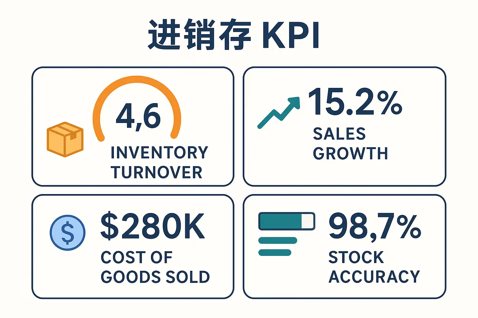 进销存KPI管理指的是通过关键绩效指标(Key Performance Indicators)来监控和优化企业的采购、库存及销售环节。常见的进销存KPI包括库存周转率、订单履行率、采购成本率等。通过设定和跟踪这些KPI,企业可以精准定位运营瓶颈,实现库存优化、减少资金占用、提升客户满意度,从而整体提升运营效率。比如,库存周转率提高20%,可以显著降低库存积压风险,释放更多现金流。