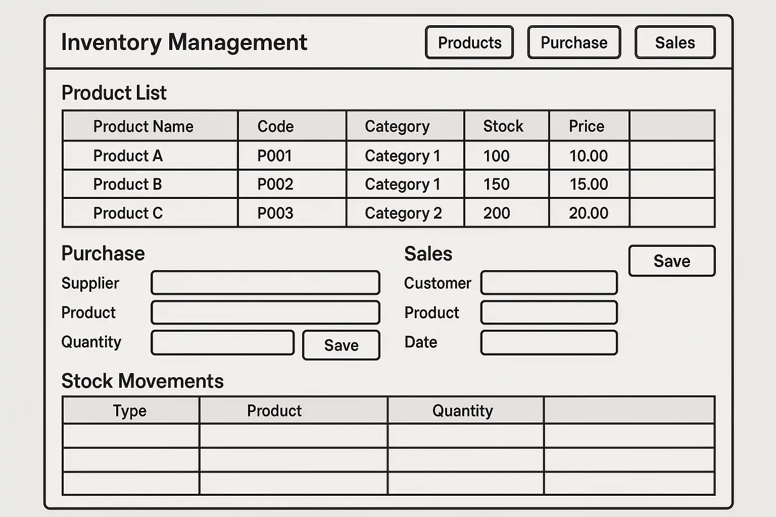 为了降低理解门槛,在进销存系统原型设计中建议: