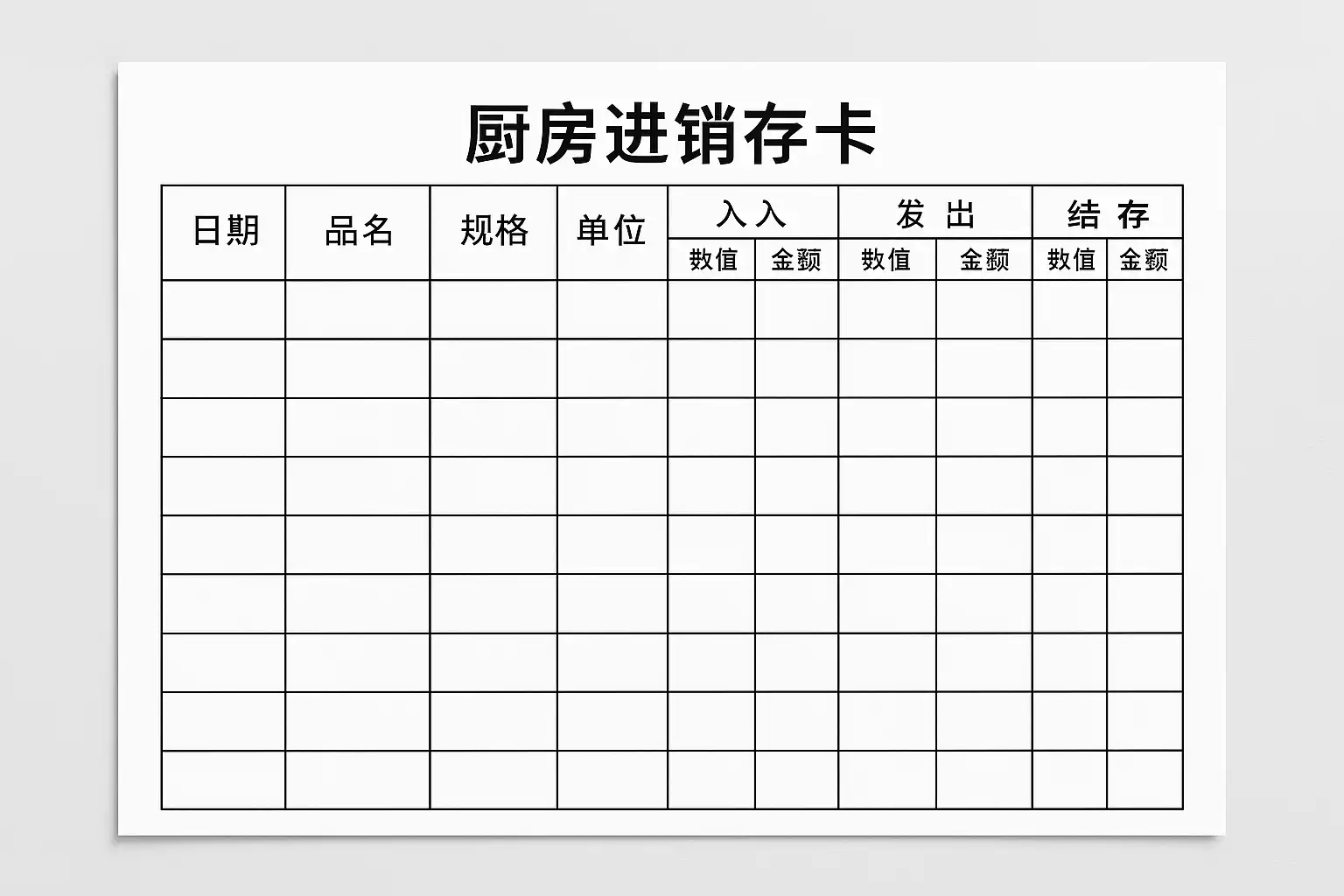 标准化进销存卡管理,是厨房库存现代化管理的基础。所谓进销存卡(Stock Card),是记录物品入库、出库及库存余量的核心工具。传统纸质卡容易出错或遗失,导致库存差异大、审计困难,因此应建立明确的制度,内容包括填写规则、数据录入频率、卡片保存周期等。