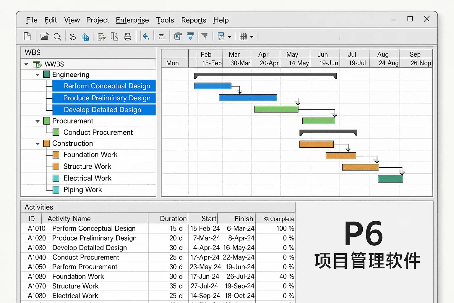 P6项目管理软件,全称Oracle Primavera P6,是全球范围内广泛应用于大型工程、建筑、IT、能源等领域的专业项目管理工具。它以先进的计划排程、资源管理、进度控制和团队协作能力著称,能满足复杂项目和多项目环境下的管理需求。P6的主要特点包括: