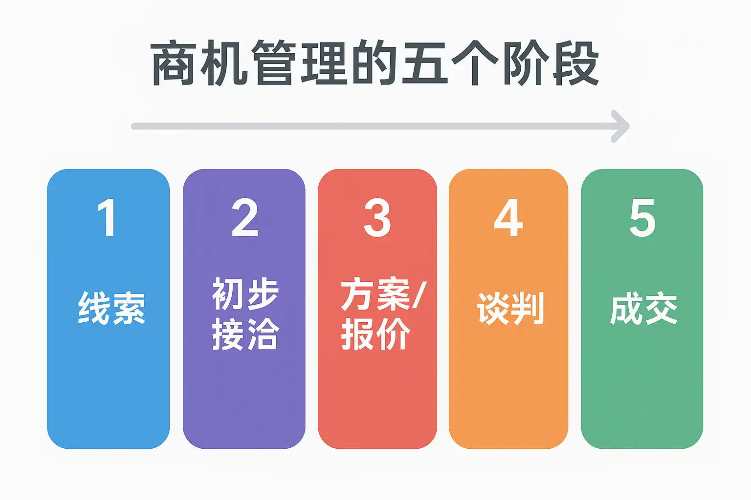 这五个阶段环环相扣,缺一不可。每个阶段都需要配合专业工具和规范流程加以执行,才能最大化商机价值。