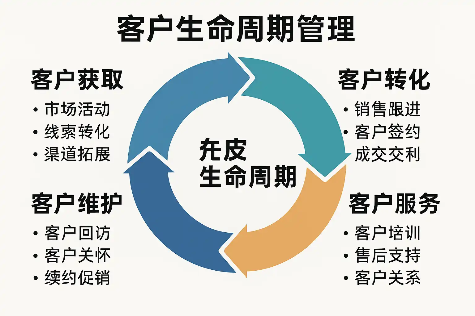 客户生命周期管理方法通常分为以下核心阶段: