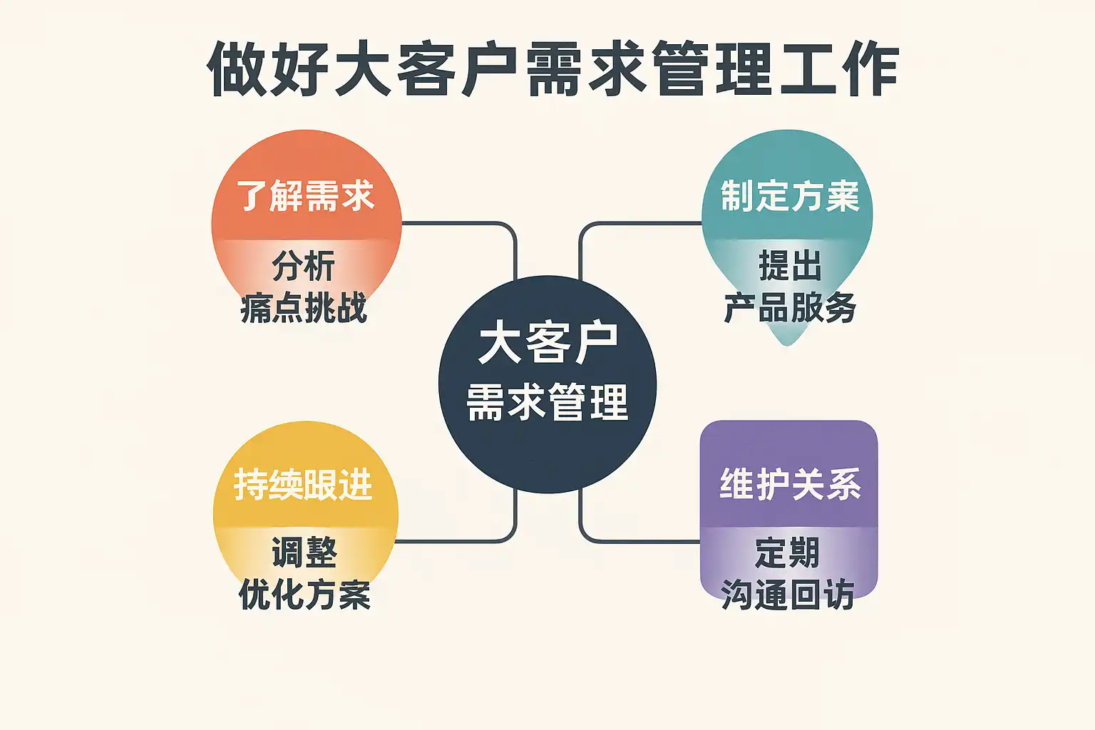 - 建立大客户专属档案和需求标签,进行精细化管理