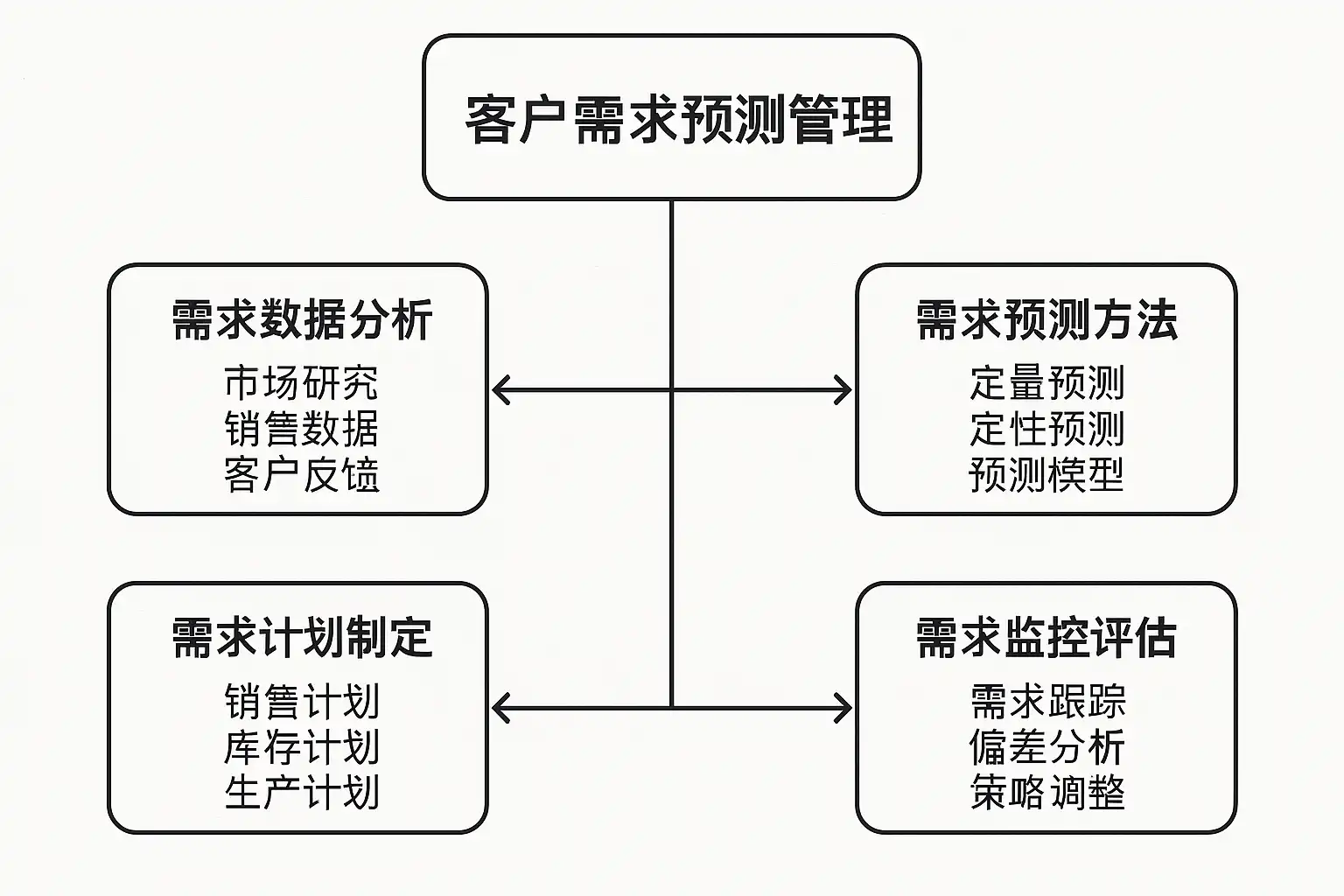 客户需求预测管理涉及多个环节,其内容涵盖了从基础数据到高阶分析的完整流程。主要包括以下几个方面: