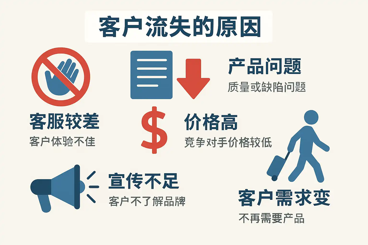 | 6 | 竞争对手的主动挖掘 | 竞品主动促销、价格优惠、服务升级等吸引原有客户 |