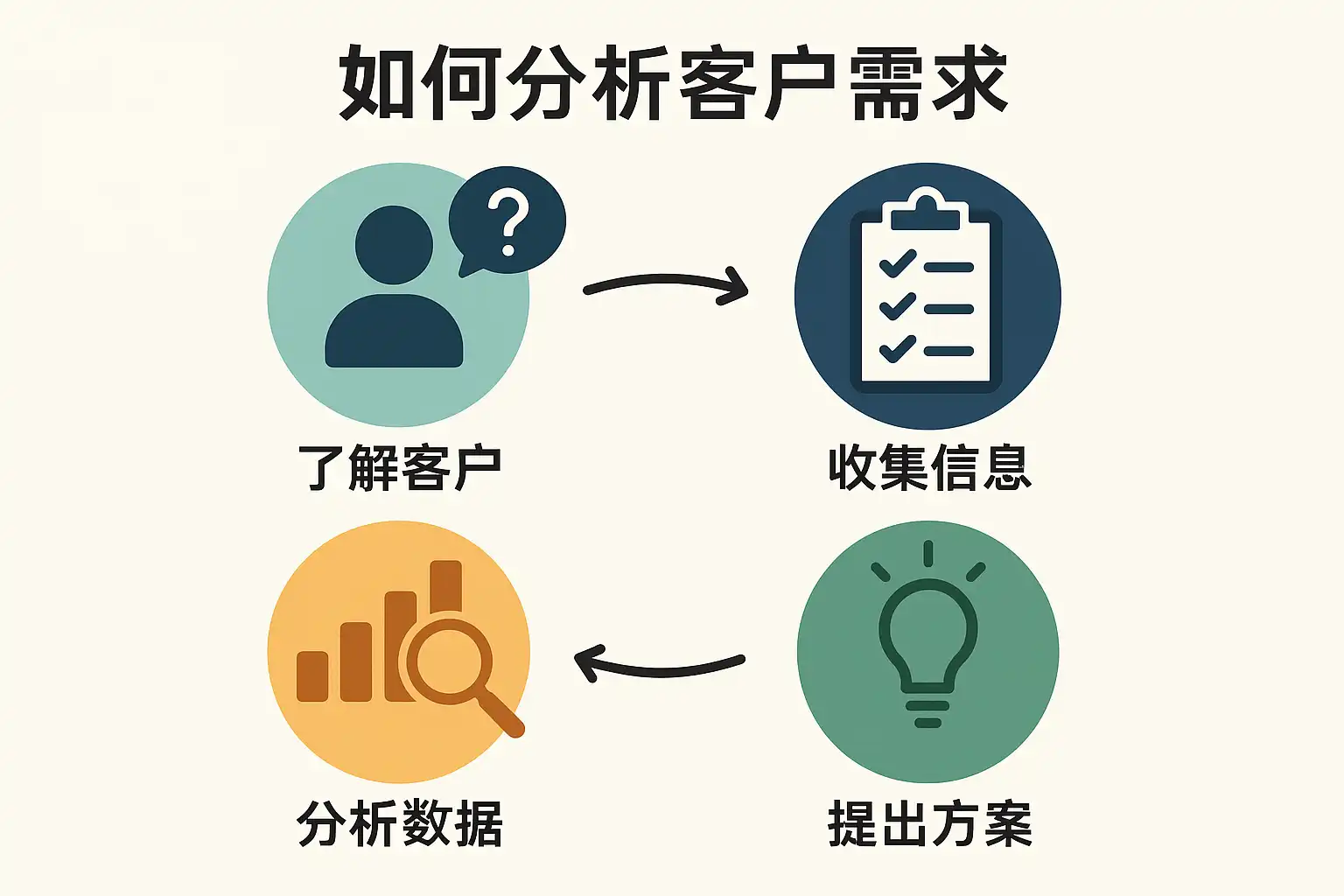 客户需求分析不是一次性工作,而是一个持续优化的循环过程。以下是精准把握客户需求的核心步骤: