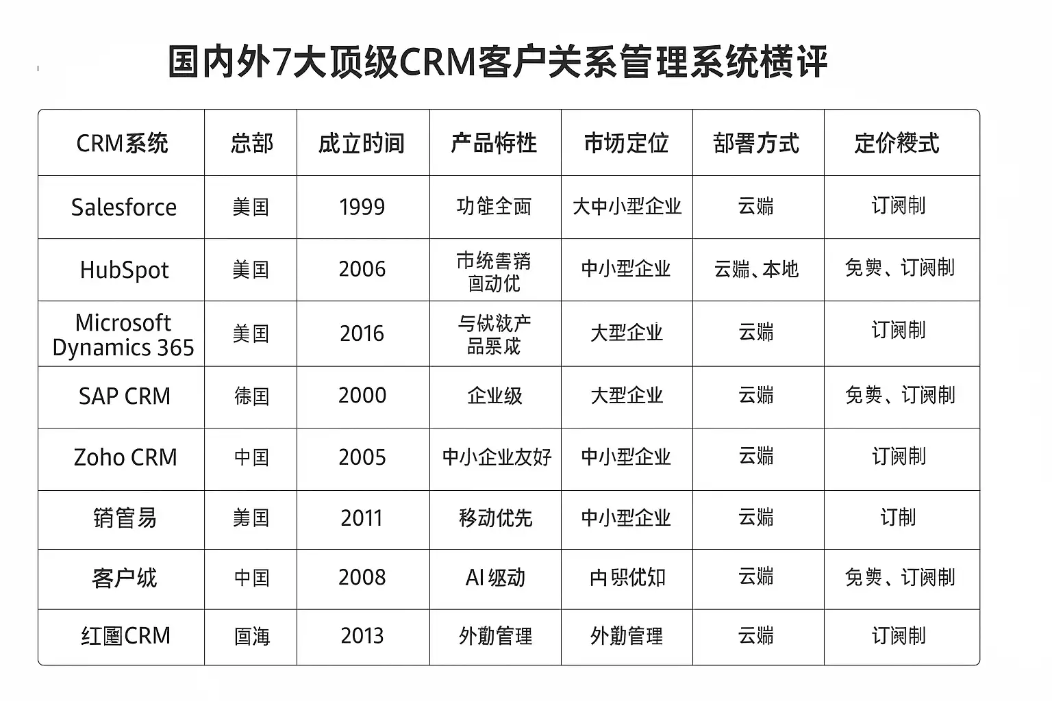 下表为7大主流CRM系统的详细对比,便于企业根据自身需求快速甄选: