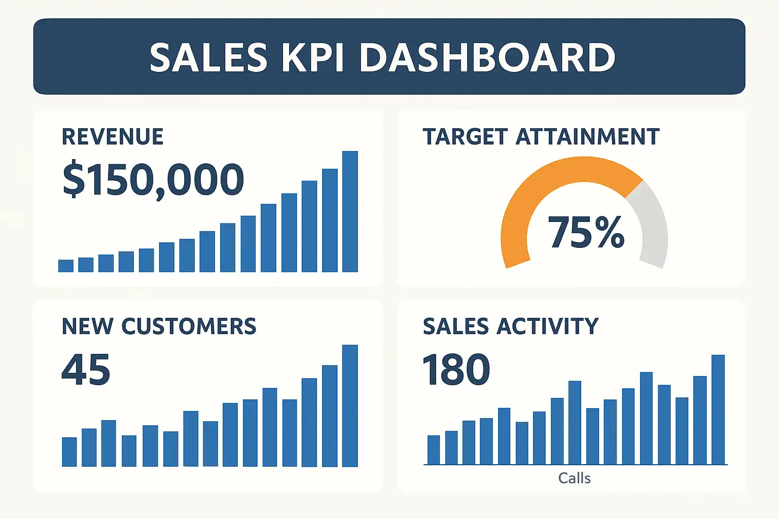 | 销售增长目标 | 总销售额、增长率 | 衡量业绩总体趋势 |