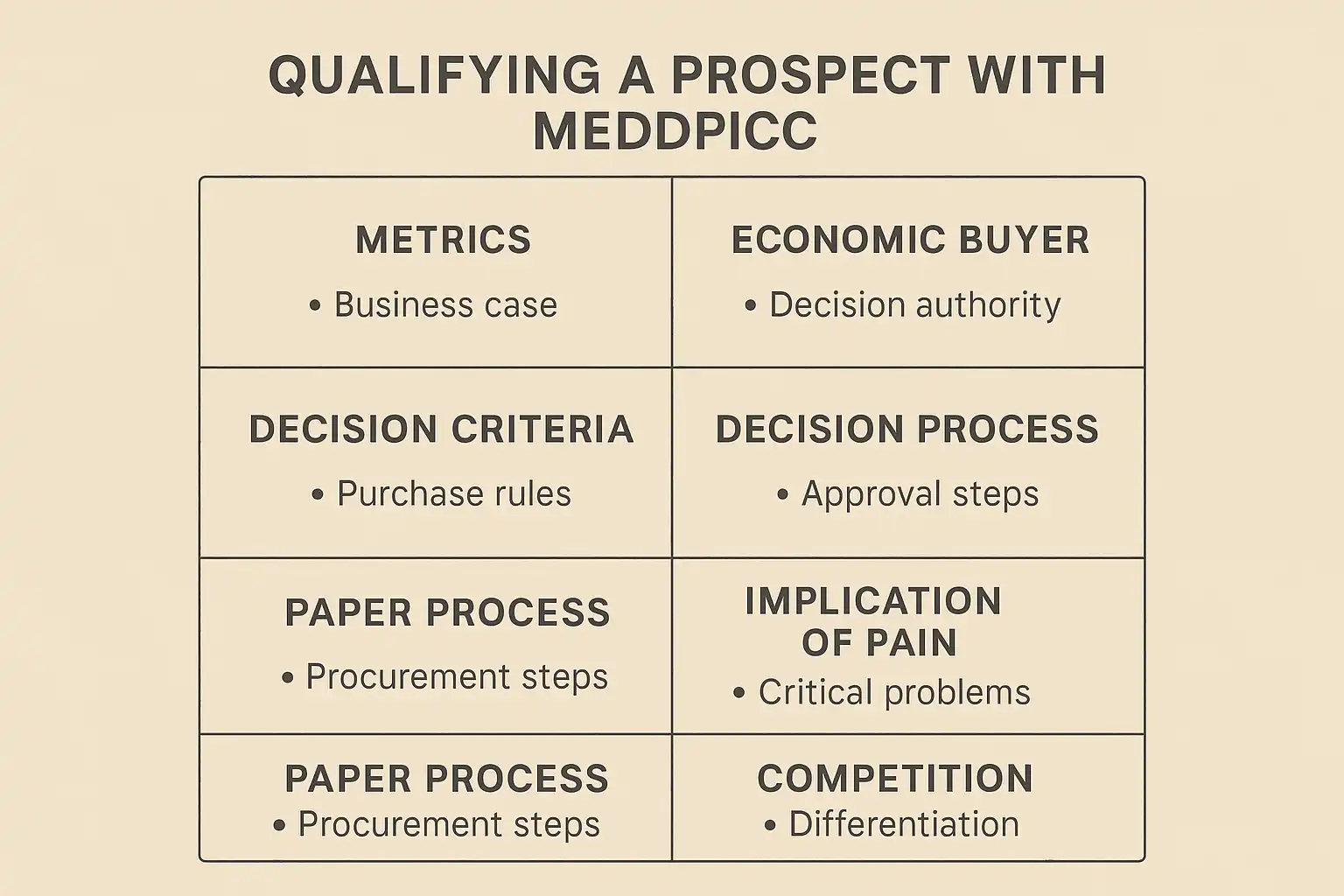 - 建立MEDDPICC标准流程,定期培训销售团队