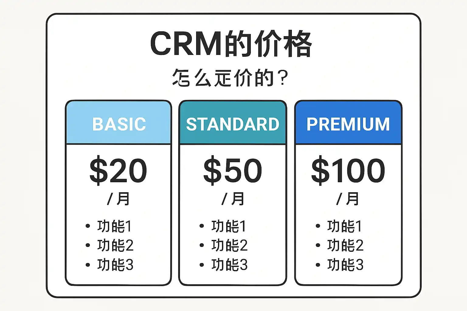 | 功能模块 | 基础VS高级,功能种类 | 基础功能(如客户管理、销售跟进)价格低,复杂功能(如自动化、BI分析)价格高 |