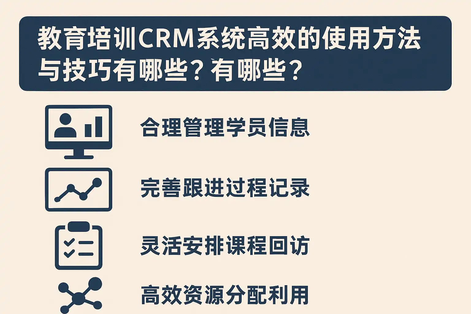 - 分阶段推进,逐步优化:先从招生、跟进等核心环节入手,逐步扩展至教务、财务、服务等全流程管理。