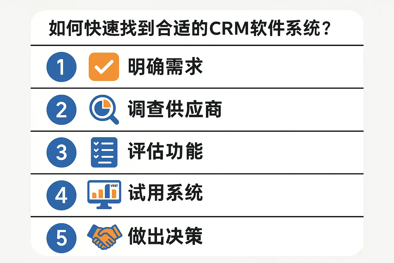 企业选型CRM软件,可按以下流程执行: