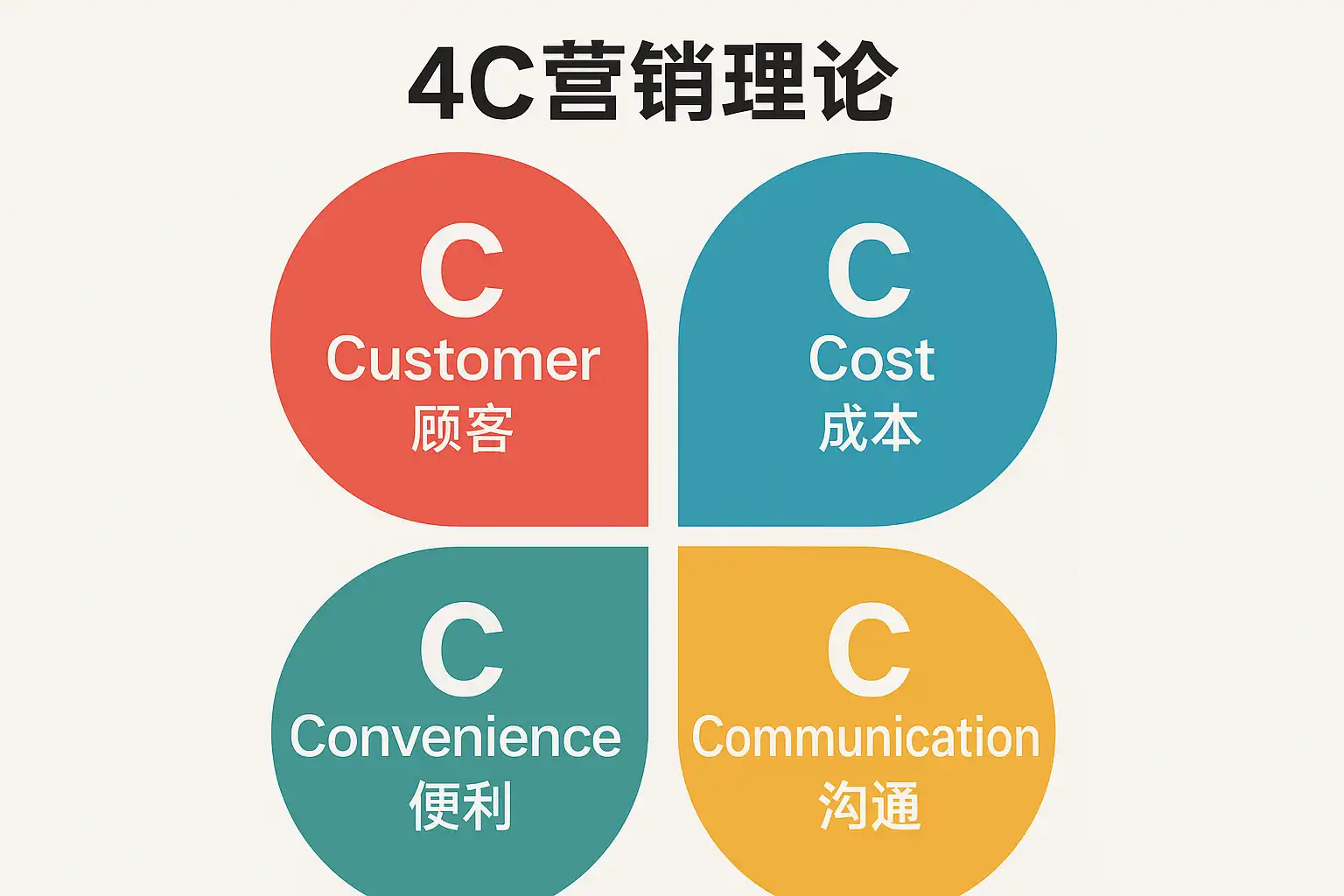 4C营销理论是由美国营销专家罗伯特·劳特朋(Robert F. Lauterborn)于1990年提出的,是对传统4P营销理论(产品、价格、渠道、促销)的创新与升级。4C理论更关注消费者,强调从客户角度出发制定营销策略。4C分别代表: