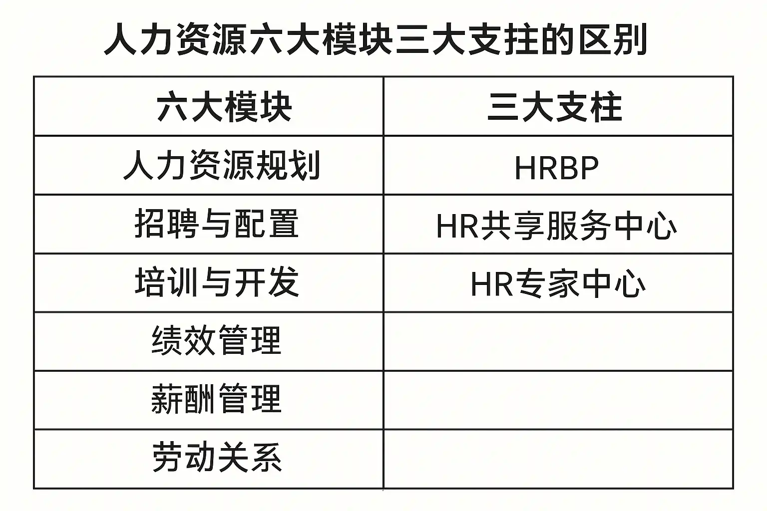人力资源六大模块解析与三大支柱区别详解,二者有何不同?