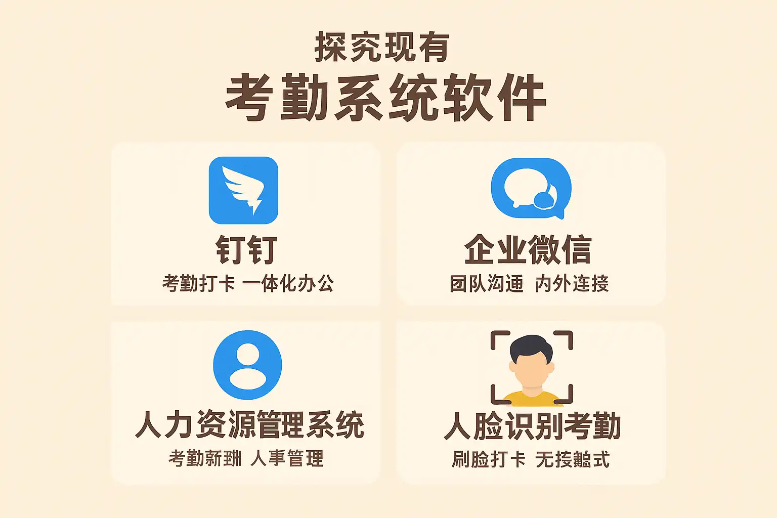 | 刷卡考勤机 | 使用IC卡/工牌刷卡识别 | 操作简单、成本低 | 有被代刷风险 |