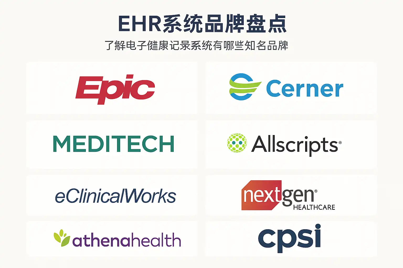 这些品牌均在电子健康记录系统领域具备成熟的技术和丰富的实施经验,选择时应结合机构规模和需求进行评估。