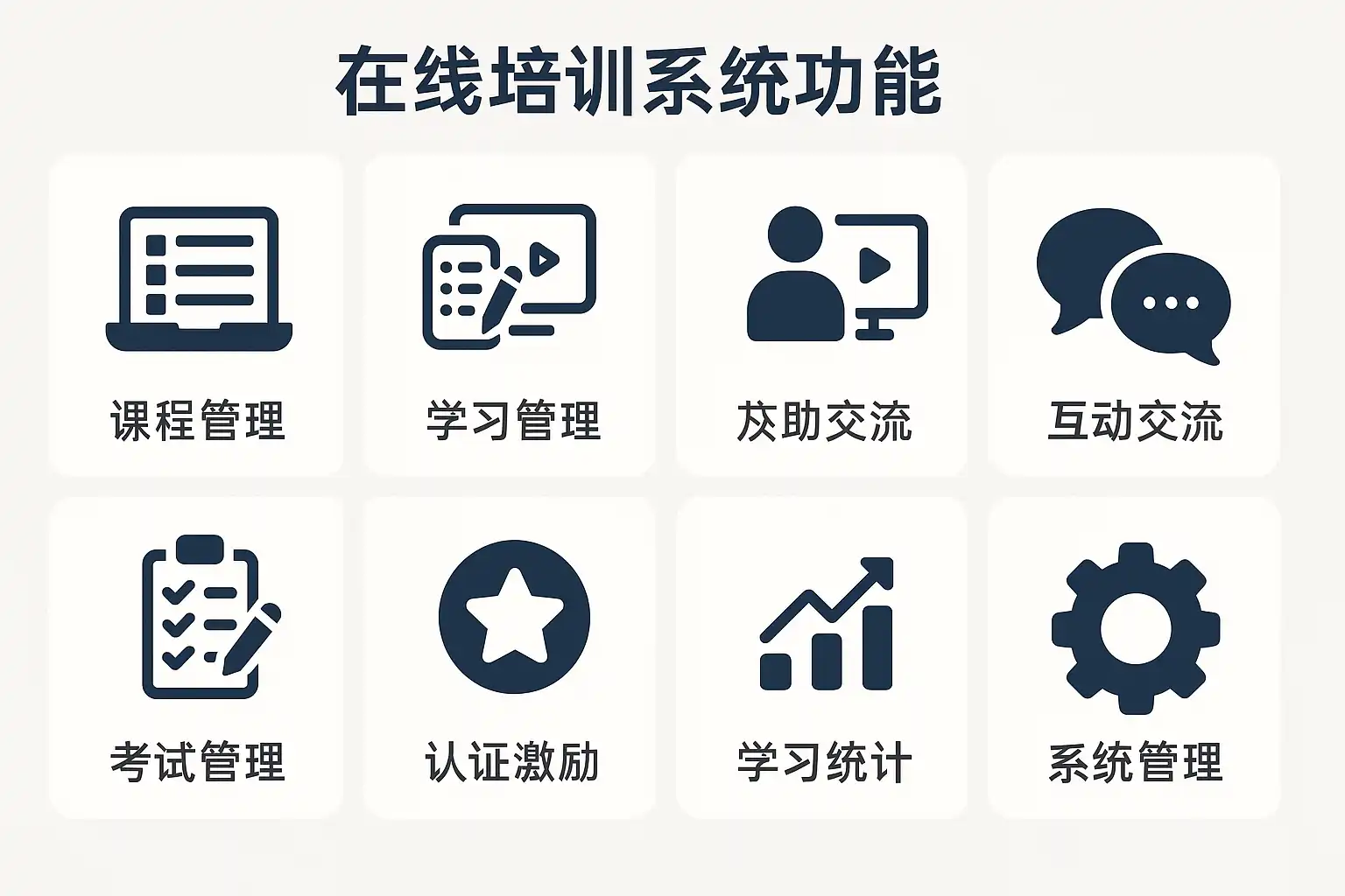 在线培训系统(LMS, Learning Management System)通过数字化手段管理、实施和评估学习活动。理想的系统应具备以下核心功能: