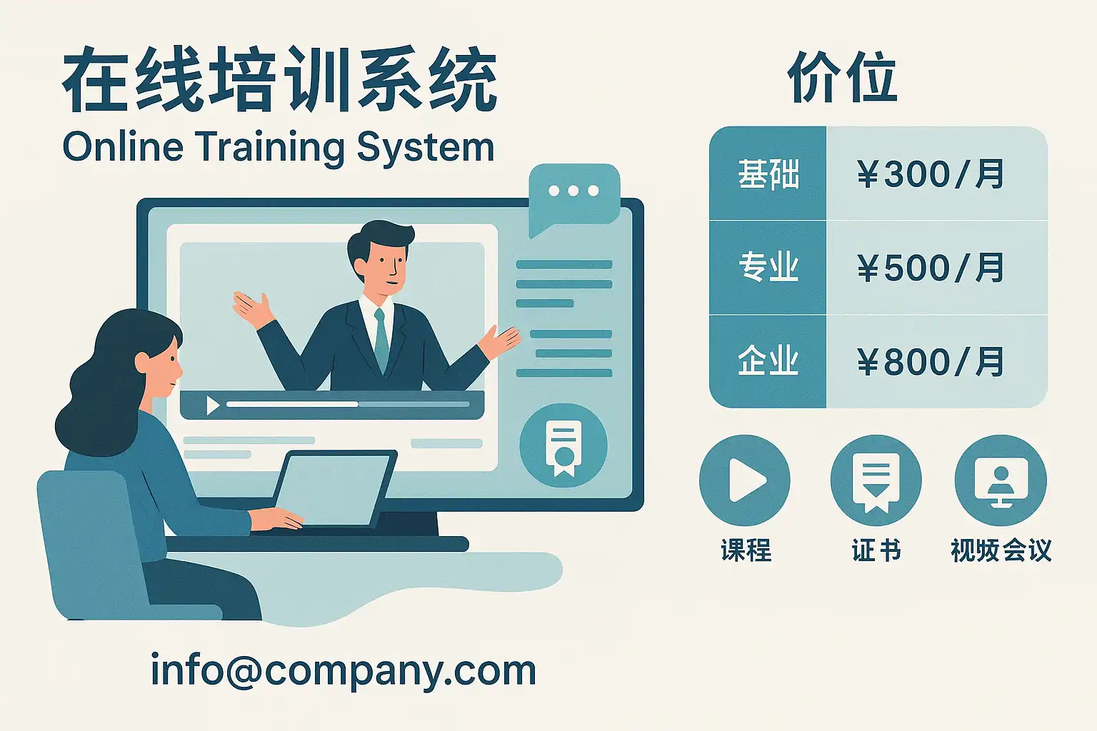 在线培训系统价格根据功能复杂度和服务内容不同,通常分为三类: