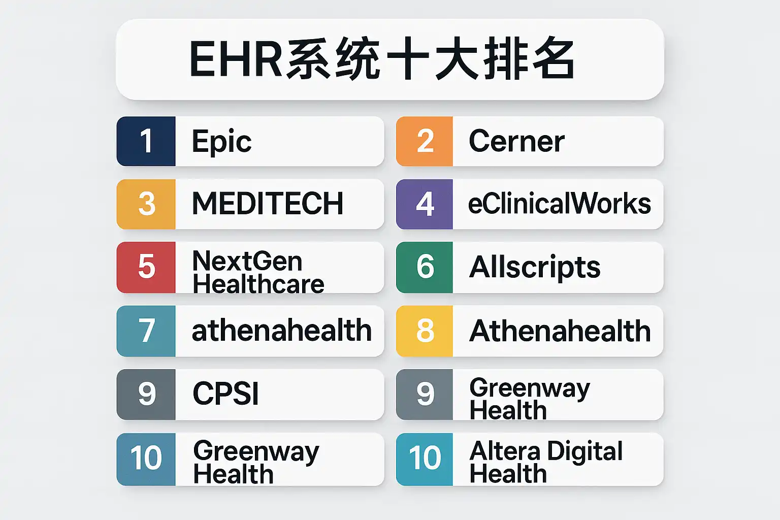 一、EHR系统十大排名最新榜单总览