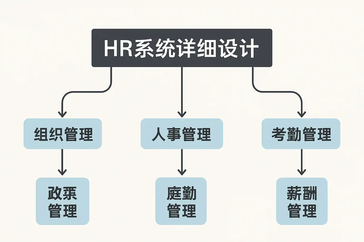 HR系统的功能模块设计是详细设计阶段的第一步,决定了系统的应用范围和业务覆盖: