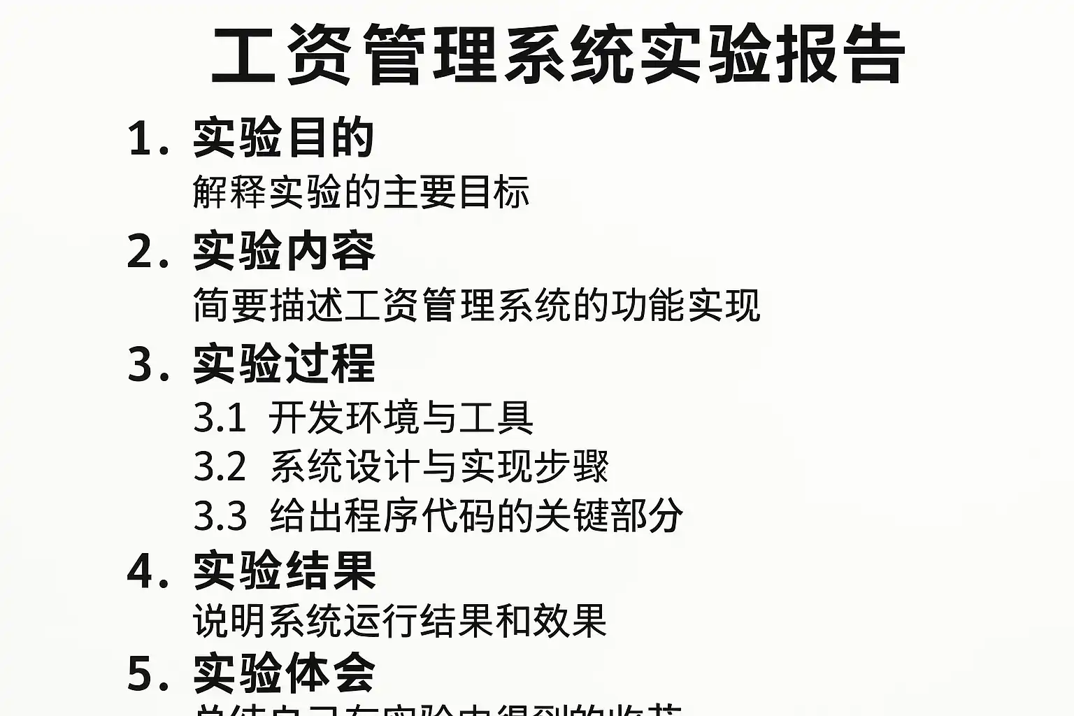 工资管理系统实验报告的结构直接决定了内容的完整性和逻辑性。一般建议按照以下结构进行书写: