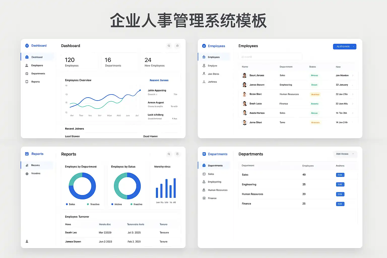 - 基础型模板:适合中小企业,涵盖员工信息管理、考勤统计、薪资核算等核心功能。