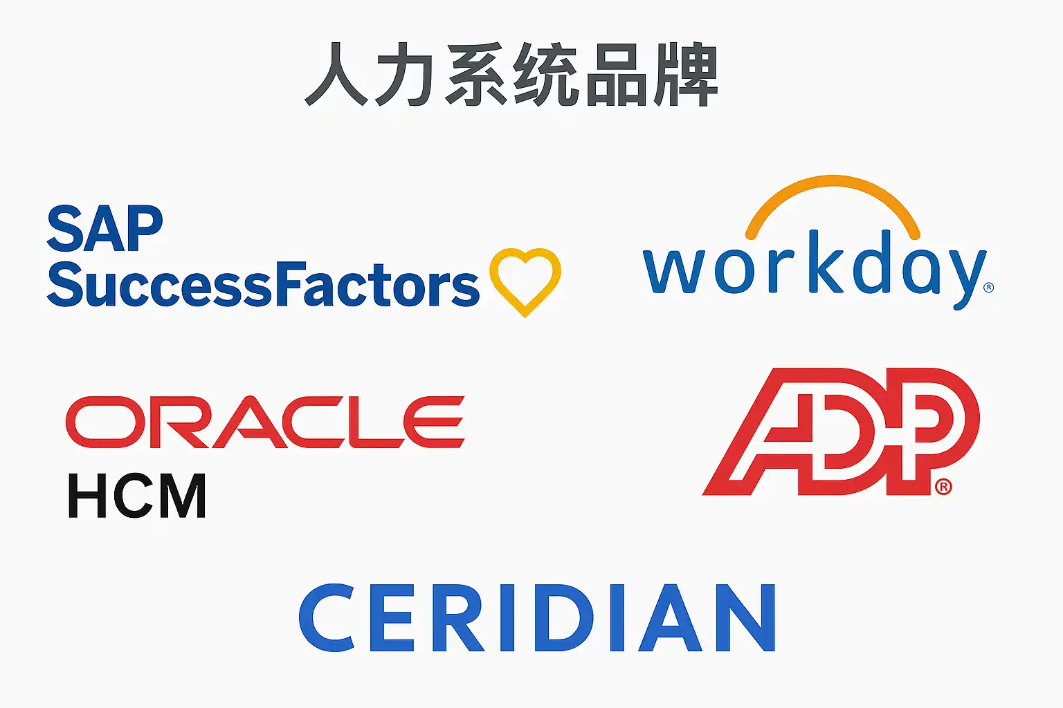 企业在选型时,常见的人力资源管理系统(HRMS/HRM)品牌如下: