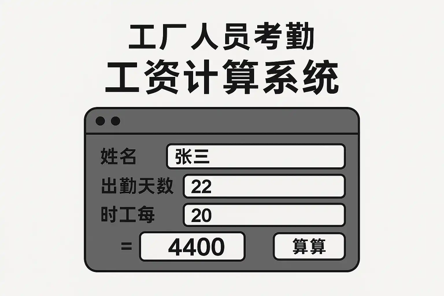 | 工资计算 | 根据工时、加班时长和工资标准自动计算 |