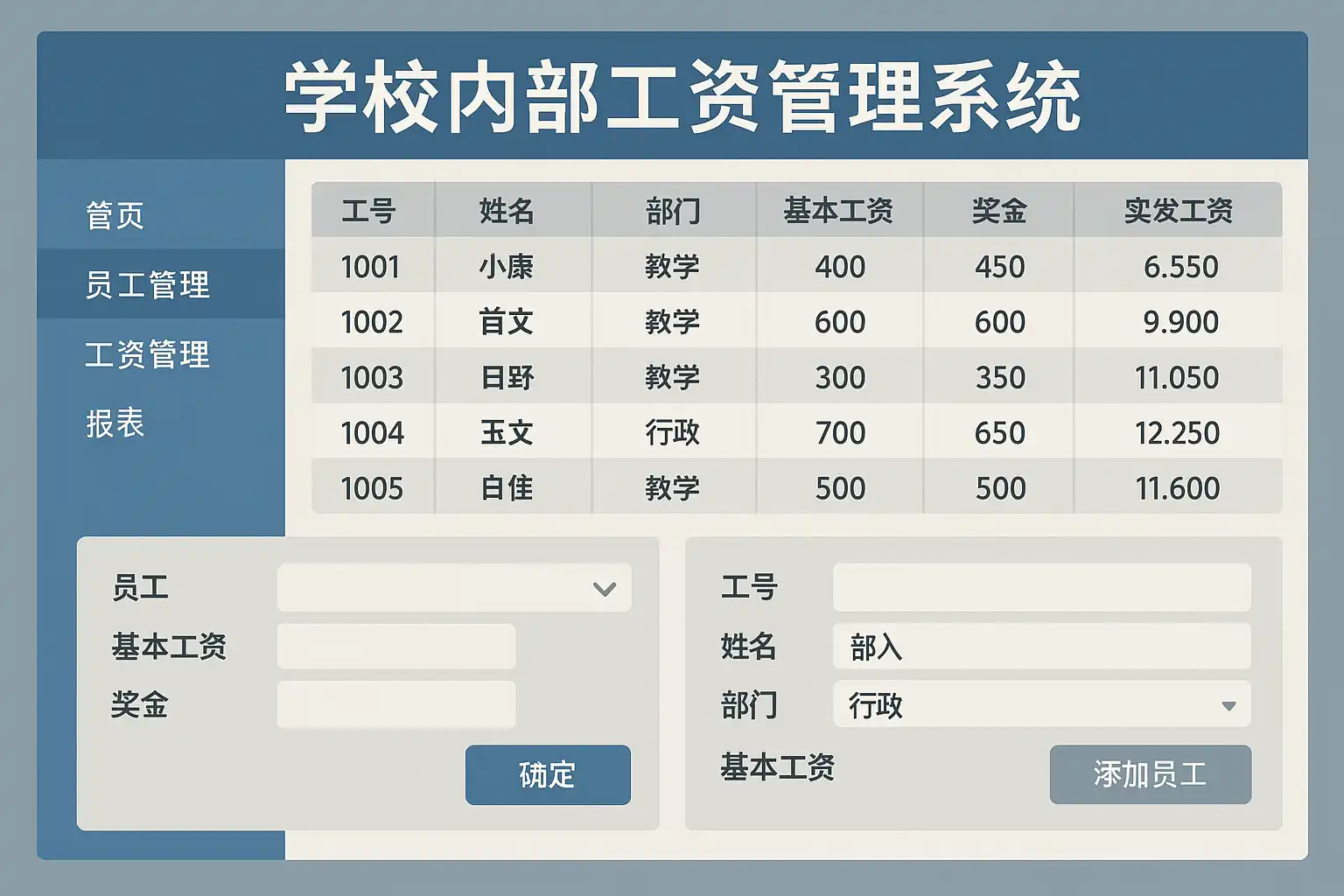 - 工资核算自动化:通过系统自动计算教师及职工工资,减少人工误差,提升效率。