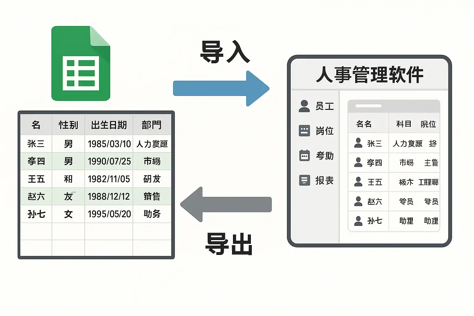 我在使用人事管理软件时,想知道如何通过表格导入和导出员工数据。具体的操作步骤是什么?有没有详细的流程介绍?