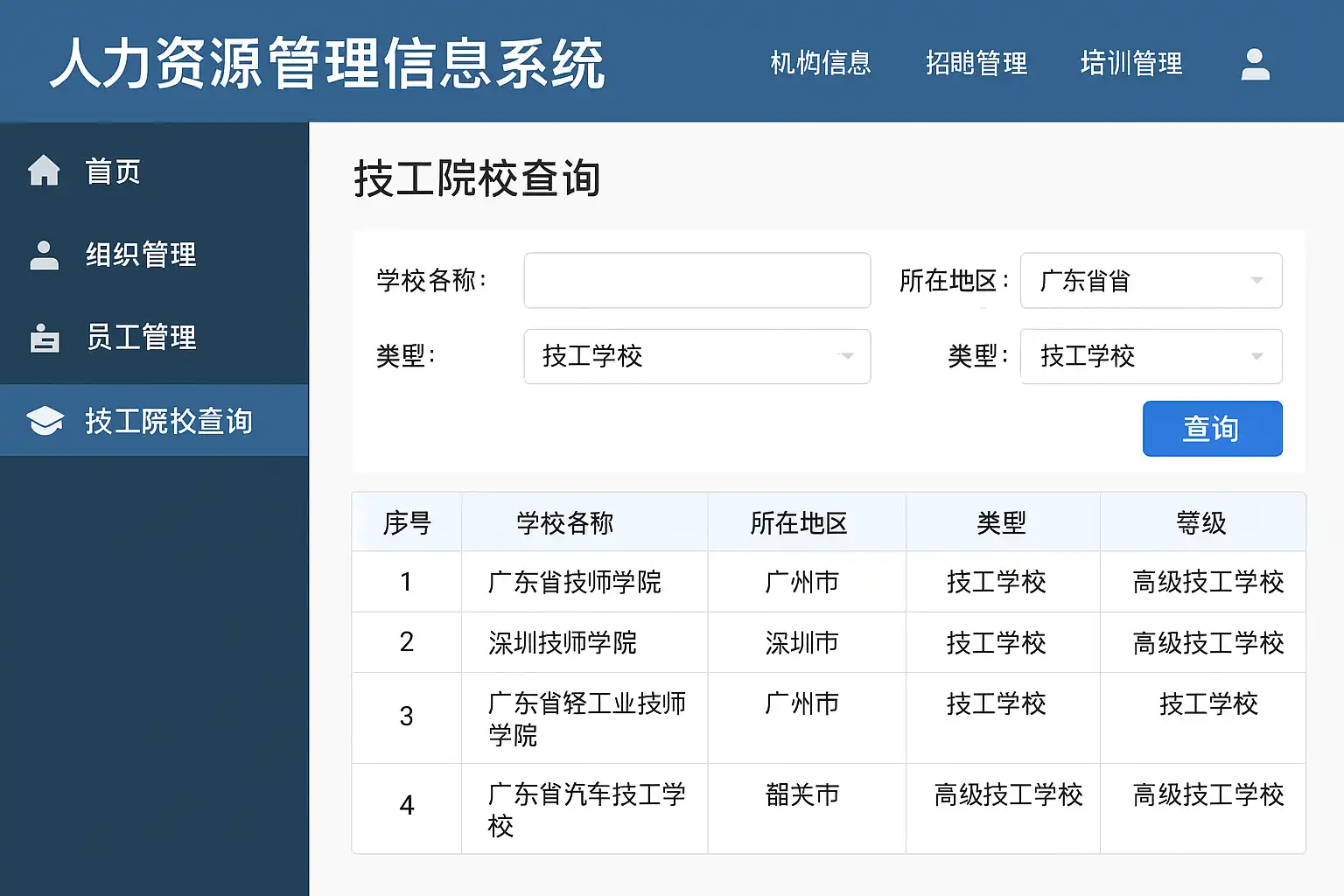 人力资源管理信息系统如何查找技工院校信息?