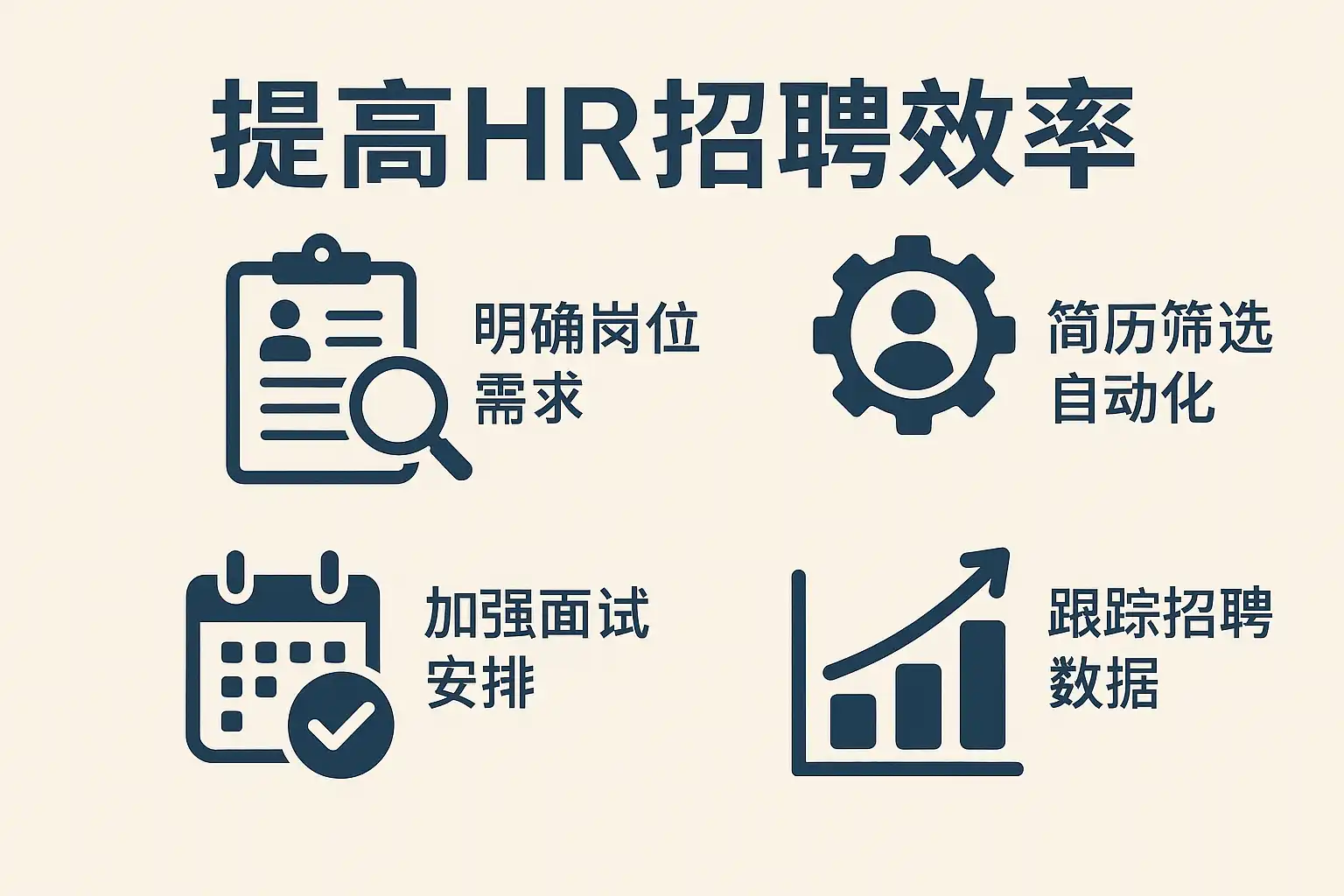 - 运用ATS(Applicant Tracking System,候选人跟踪系统)自动化简历筛选和面试安排,减少人工操作时间;