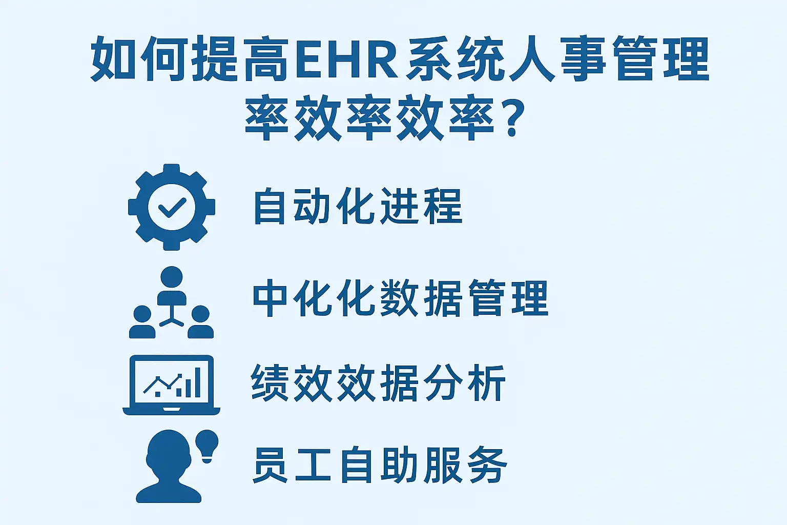 企业在推进EHR系统效率提升时,常见问题包括系统选型不当、流程未标准化、人员培训不足等。快速改善的建议如下: