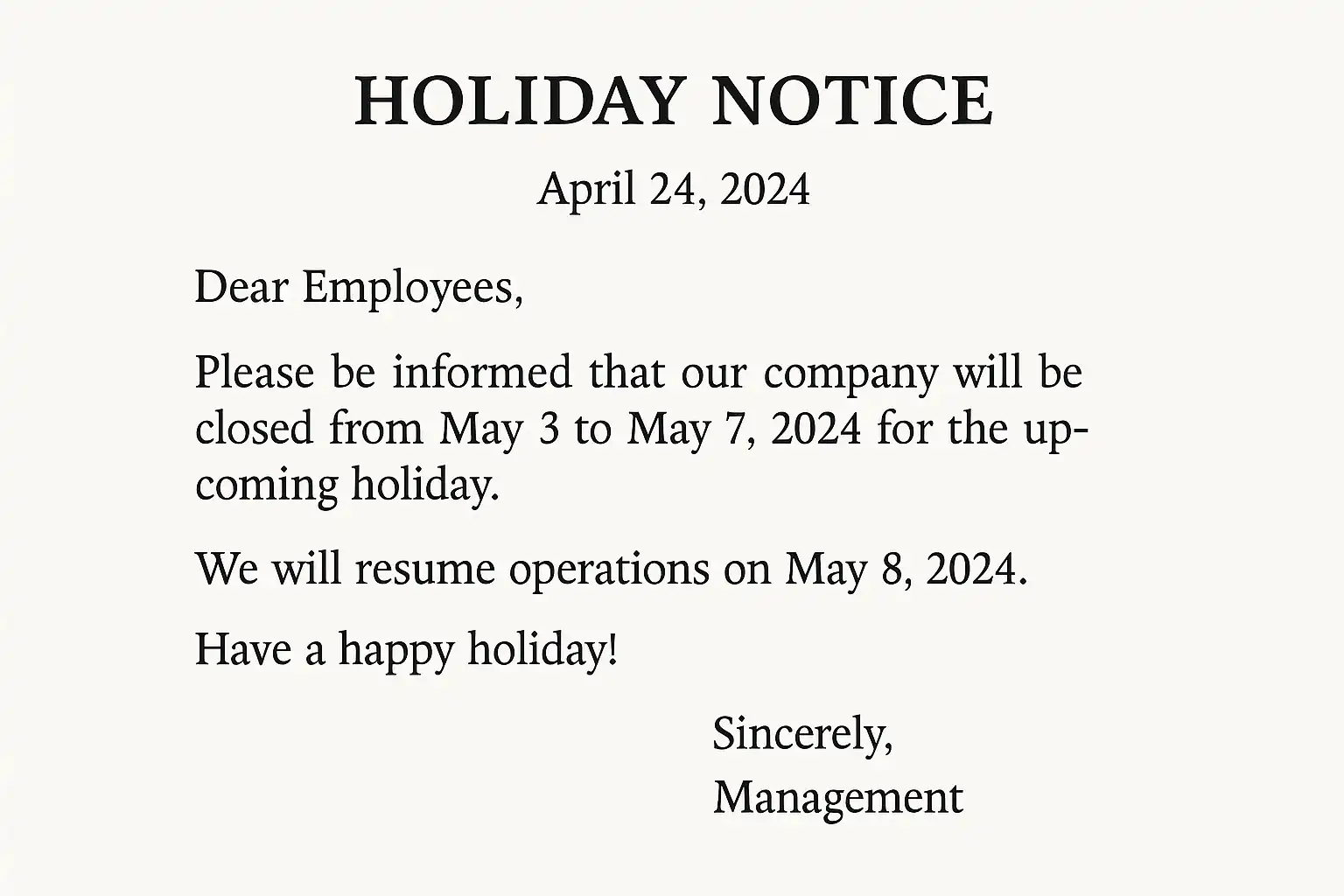 如何通过结构化布局提升企业假期通知书的可读性?