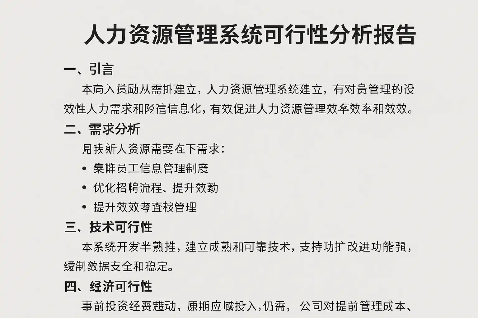 人力资源管理系统可行性分析报告的核心内容有哪些?