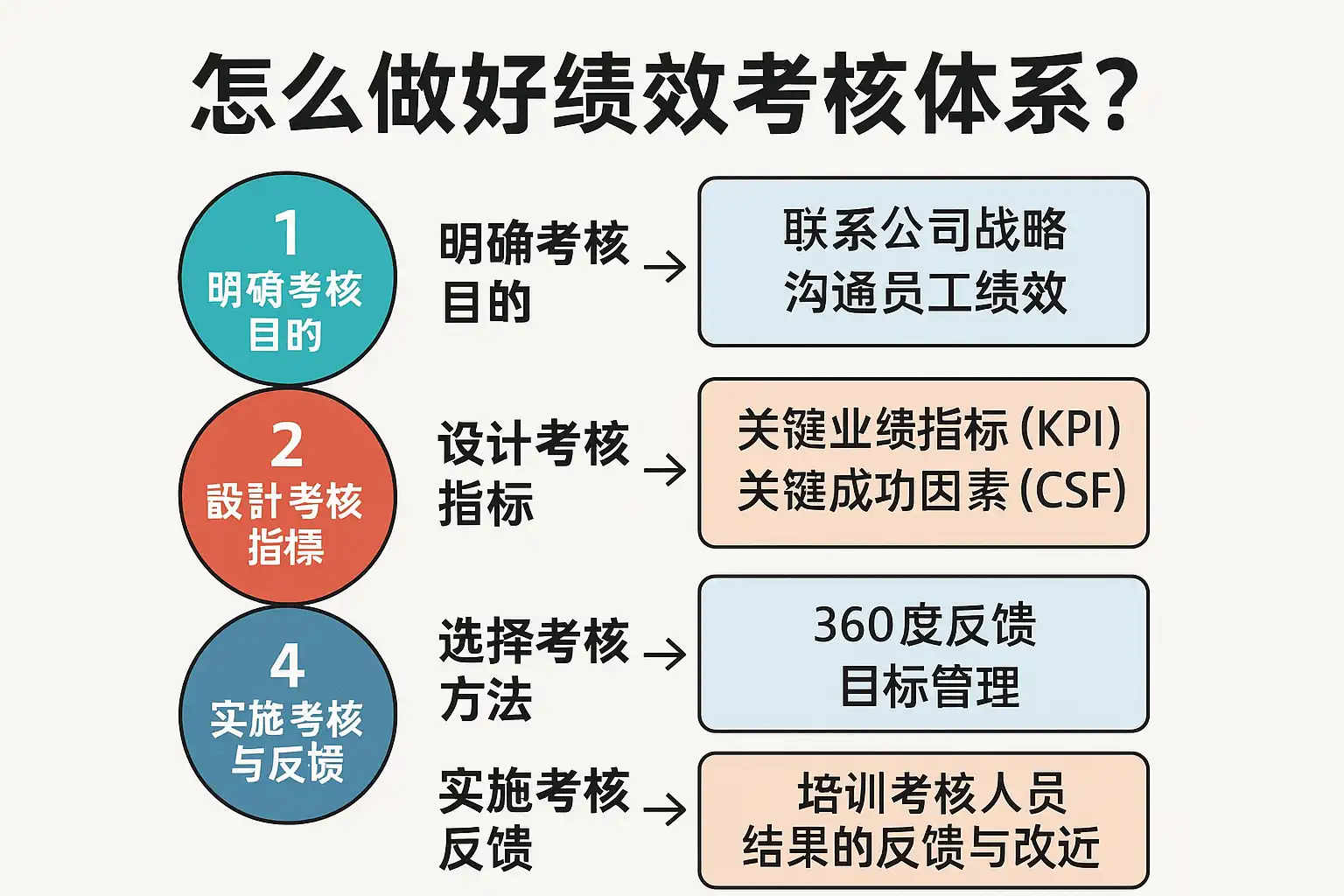 - 反馈与改进:及时反馈考核结果,制定改进计划,促进员工成长。 通过以上步骤,绩效考核体系可以系统化、科学化,提升企业整体绩效。